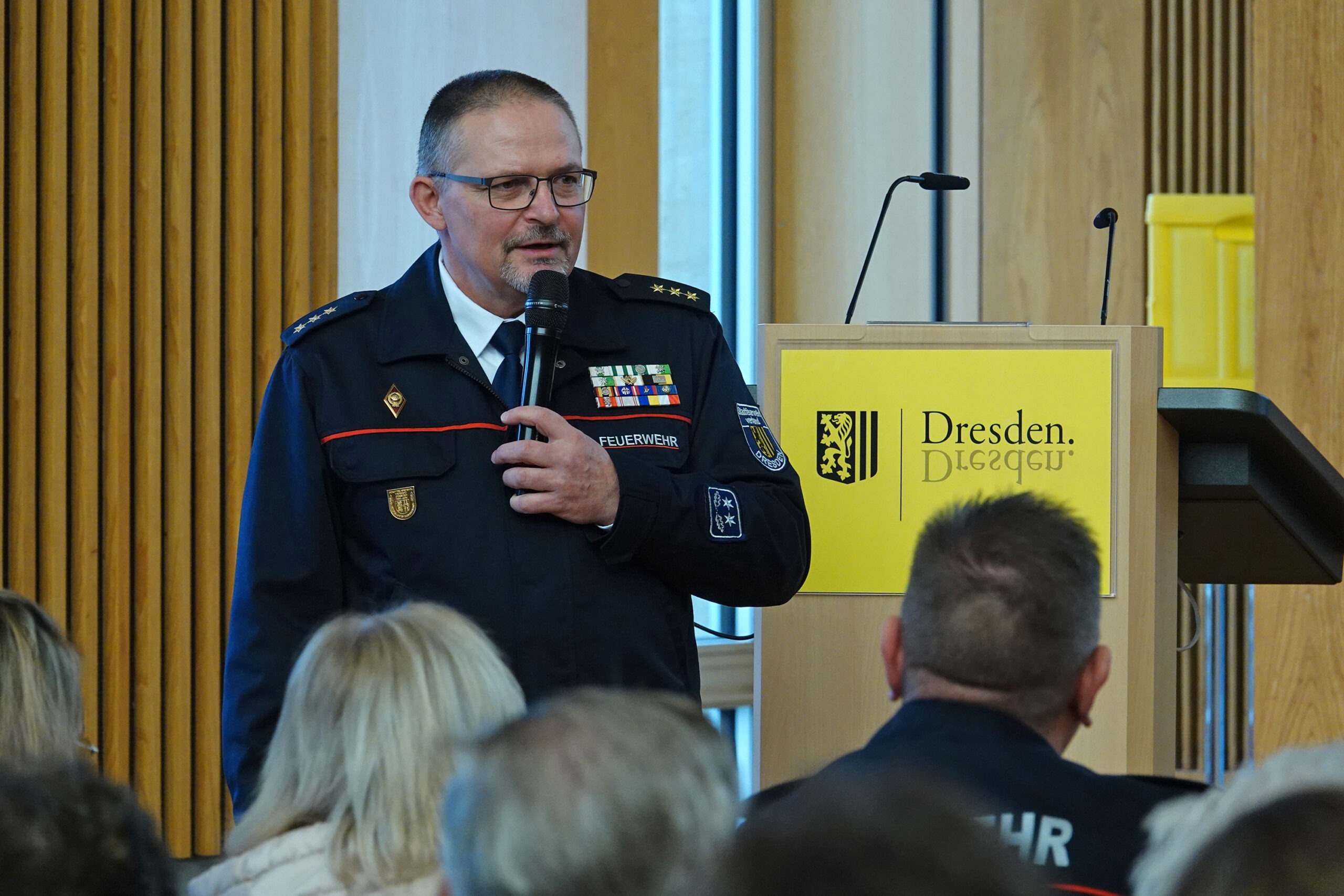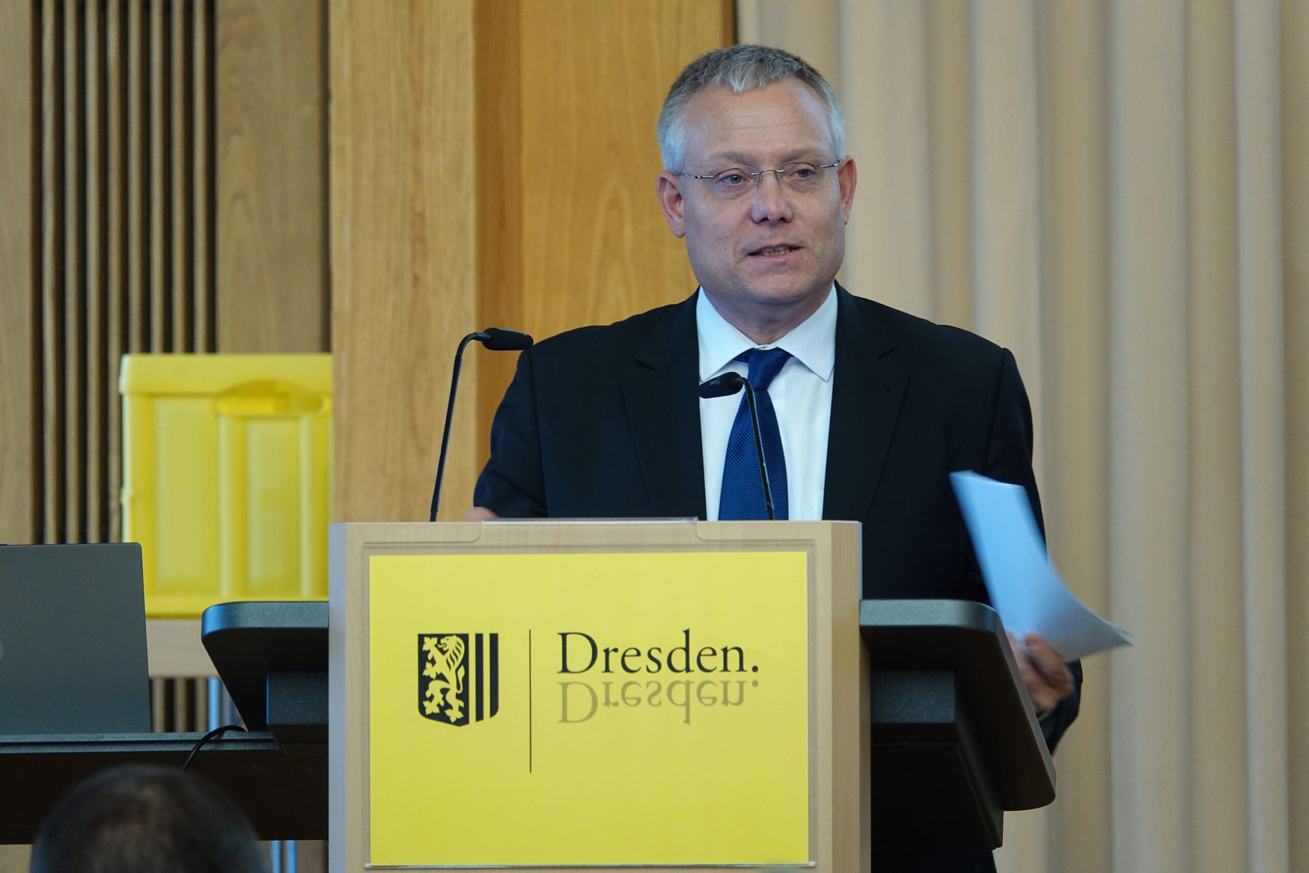 Der Beigeordnete für Wirtschaft, Digitales, Personal und Sicherheit der Landeshauptstadt Dresden, Bürgermeister Jan Pratzka, dankte in seinem Grußwort allen Frauen und Männern, allen Mädchen und Jungen, die sich im Haupt- oder Ehrenamt für ihre Mitmenschen und unsere Gesellschaft einsetzen.